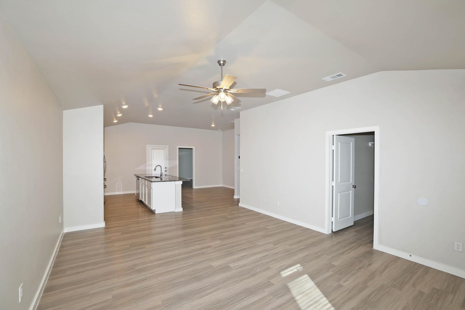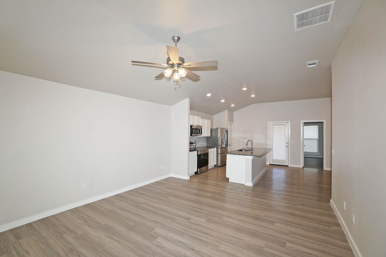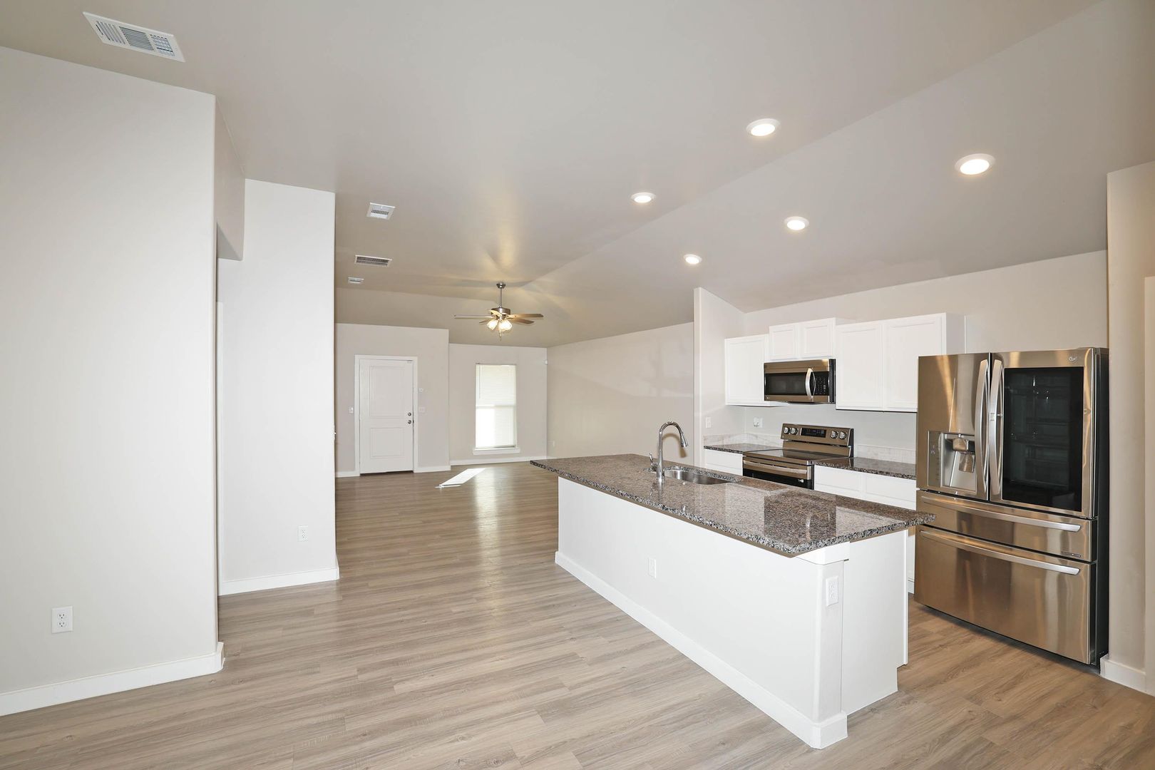 Charming home in the desirable Meadows neighborhood! Built in 2022 the home features low maintenance solid floors throughout and a modern, open-concept layout perfect for comfortable living and entertaining! The kitchen is a chef's dream with sleek granite countertops, refrigerator, dishwasher, range, and microwave—everything you need to move right in and start cooking!