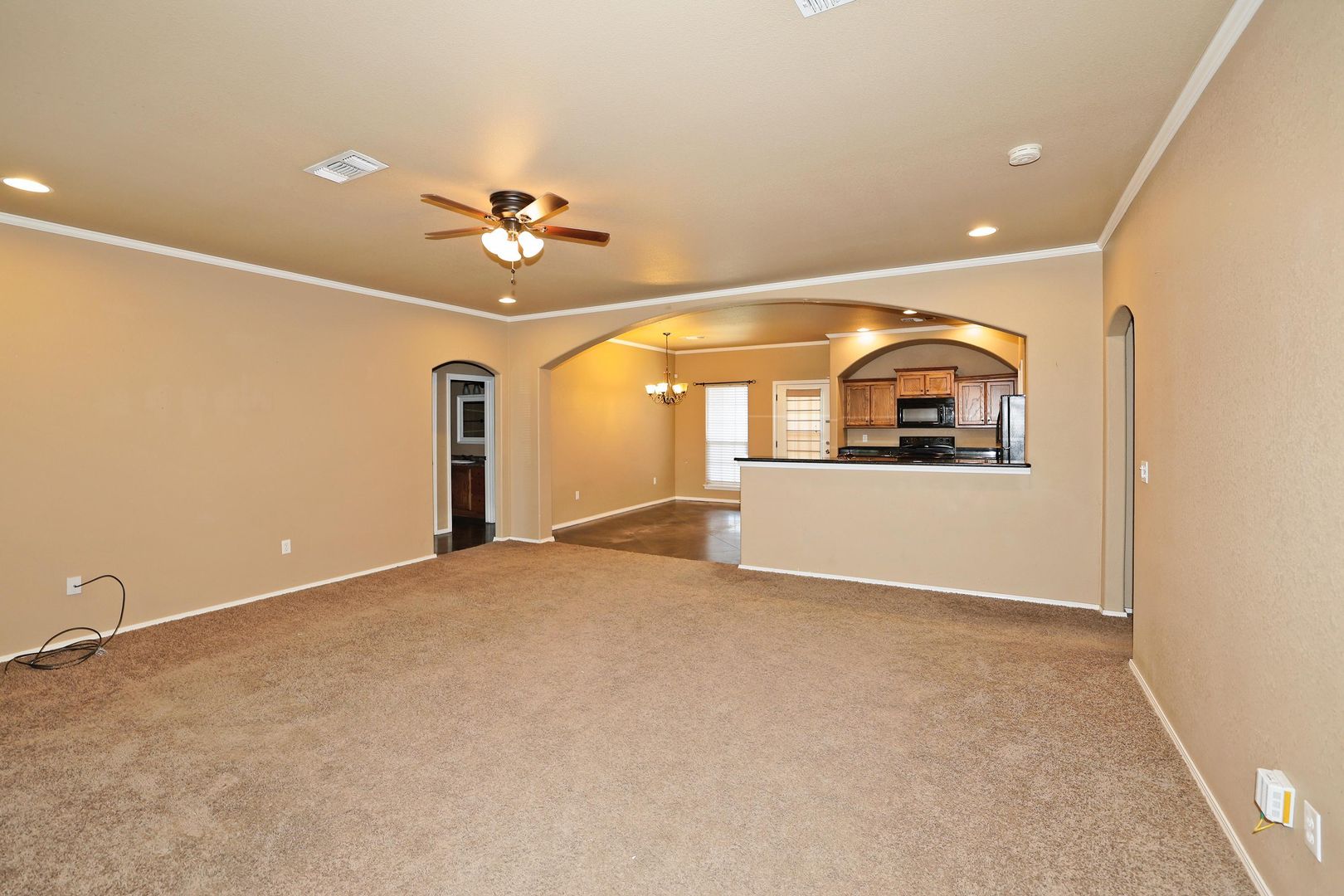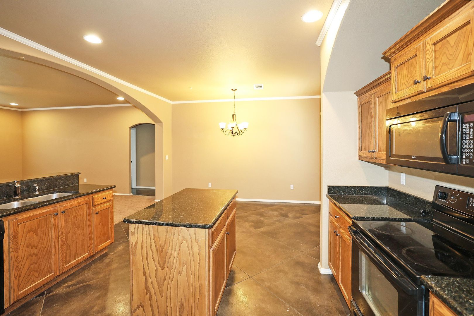 Open floor plan, spacious living area, beautiful kitchen with granite counter tops, and island. Isolated Master bedroom, master bathroom with his and her sinks.