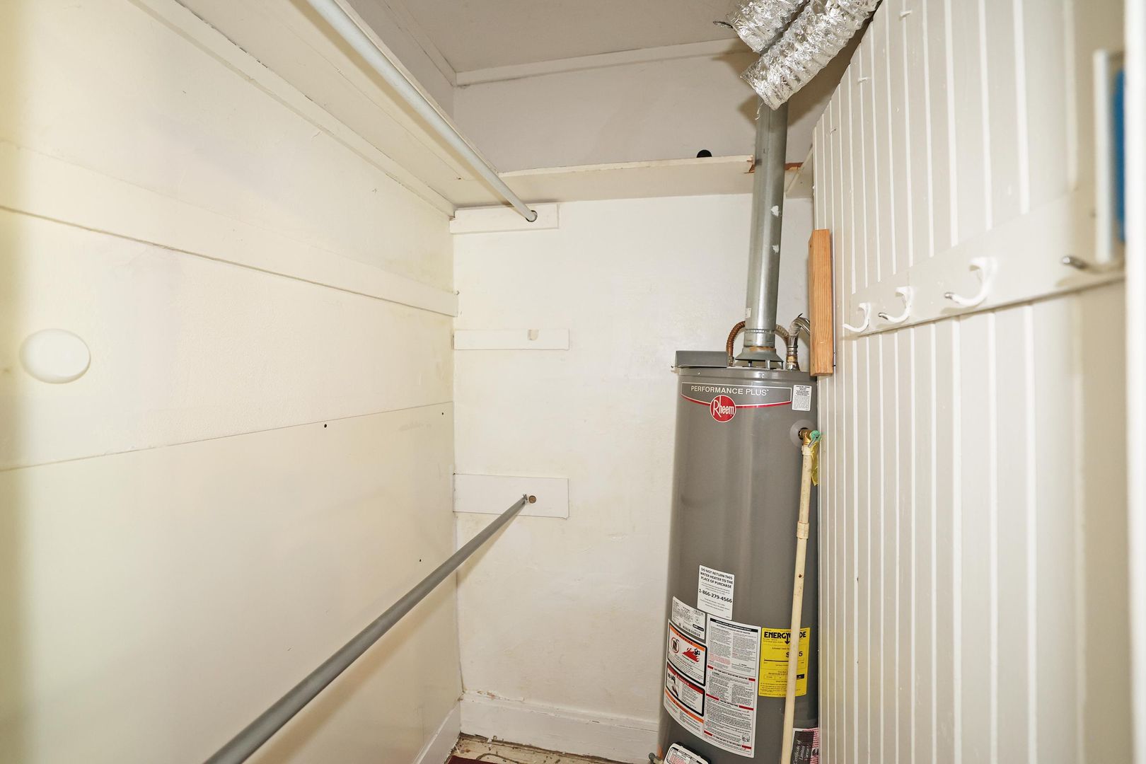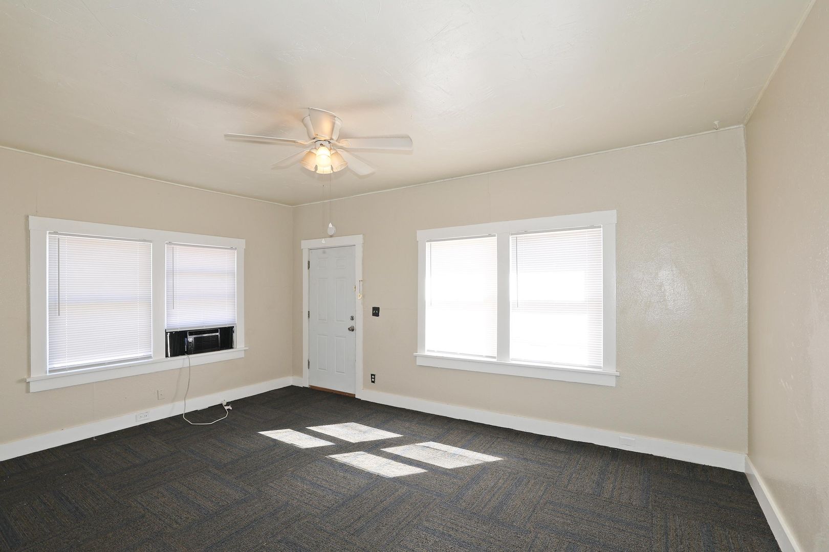 Ready for new tenant with living area, breakfast area and bedroom, stove, W/D conn and wall furnace.